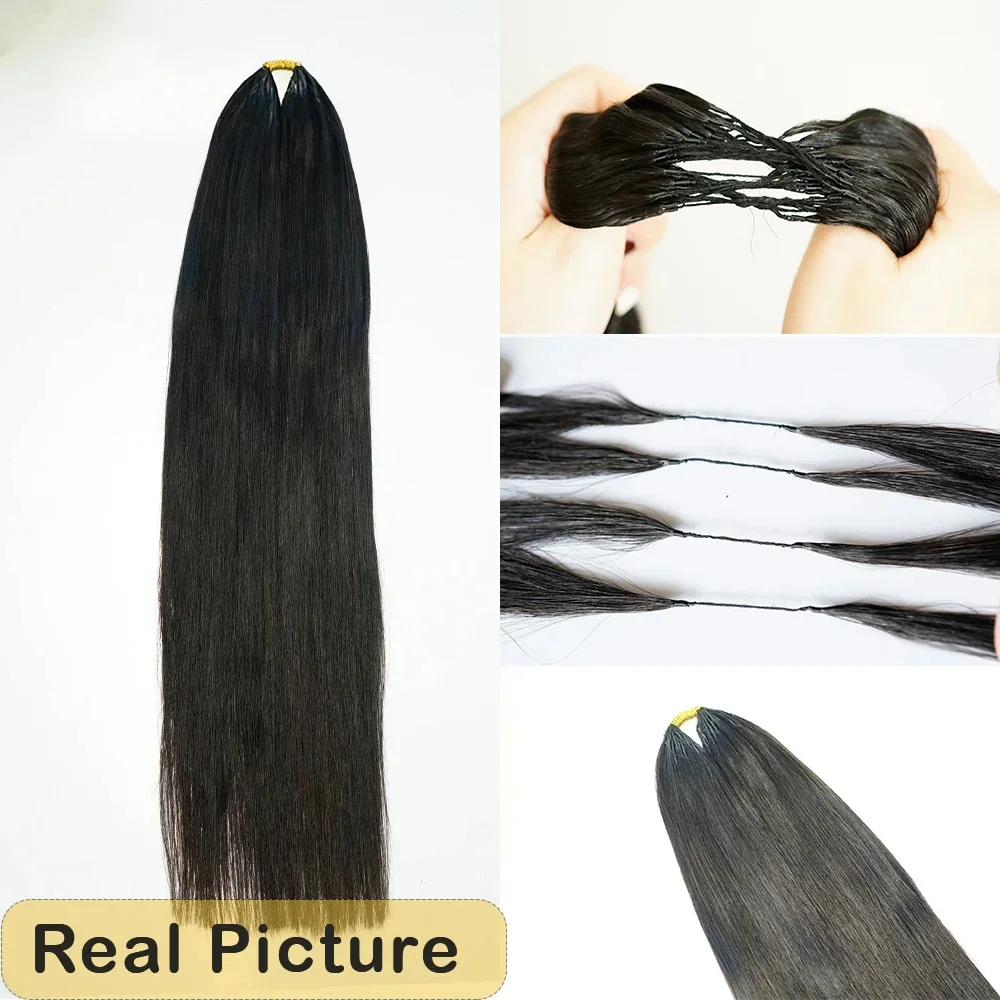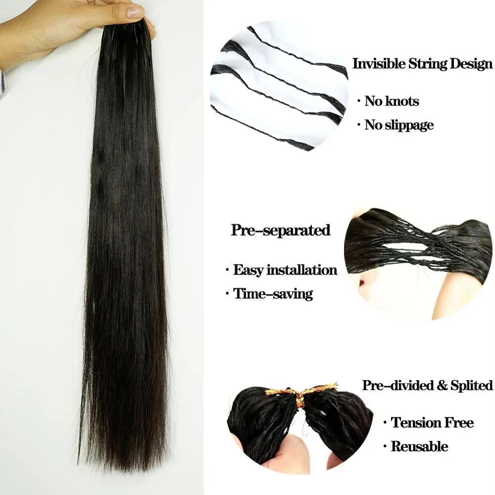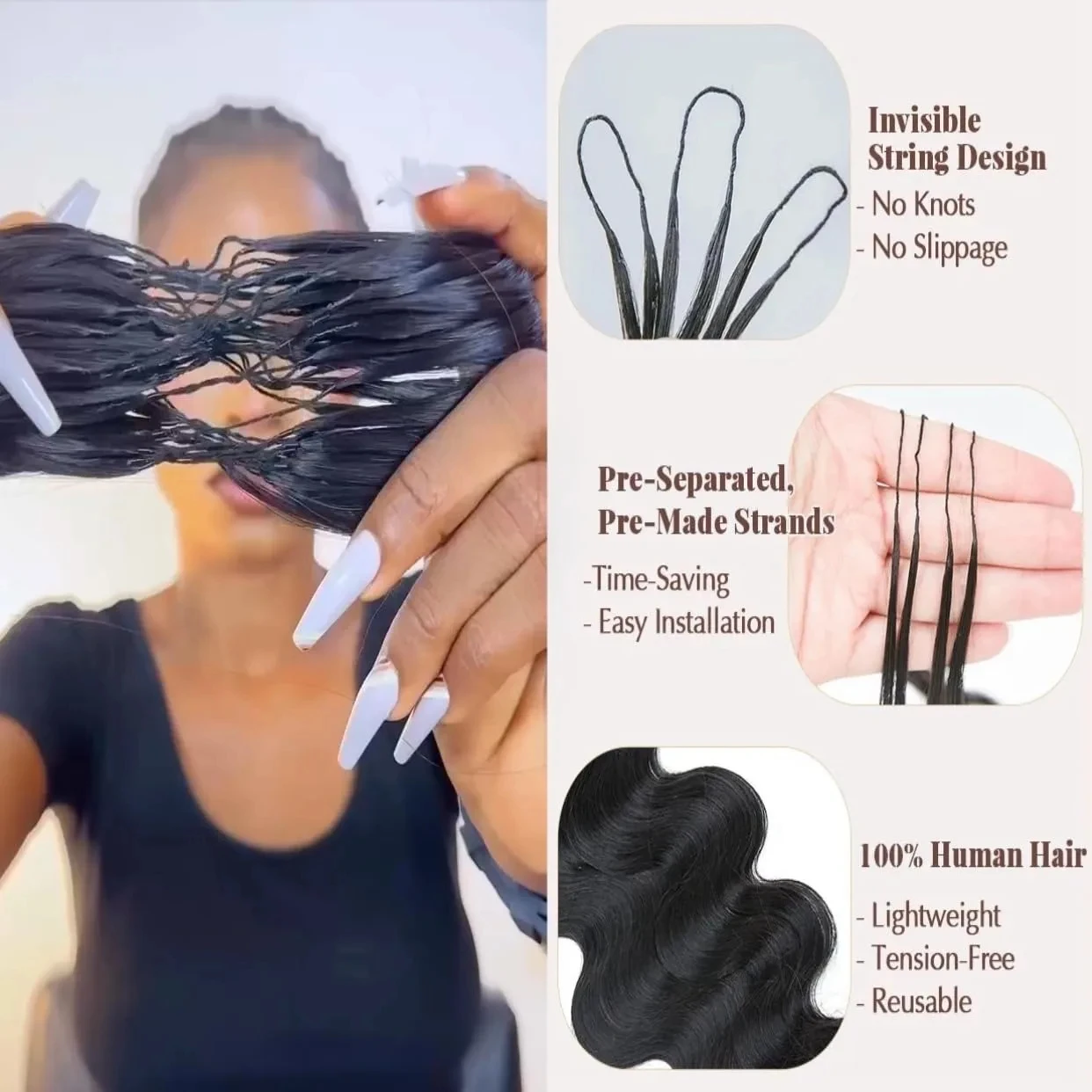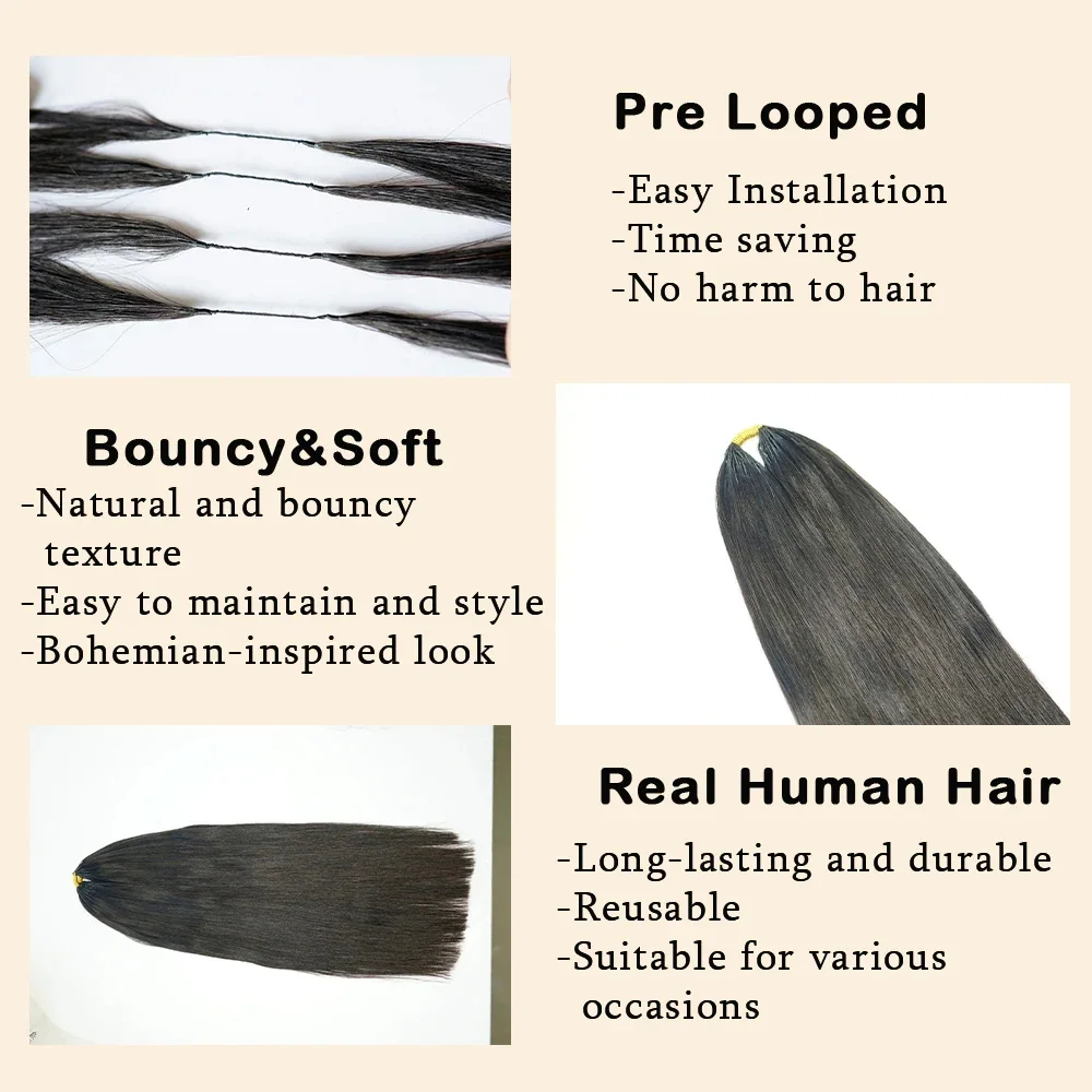 Crochet Human Hair Straight Human Hair Body Wave 1B Black Pre-Separated Knotless Crochet Extensions With Loop For Braiding