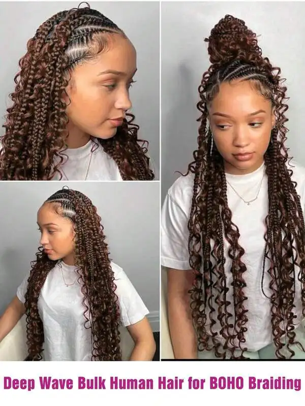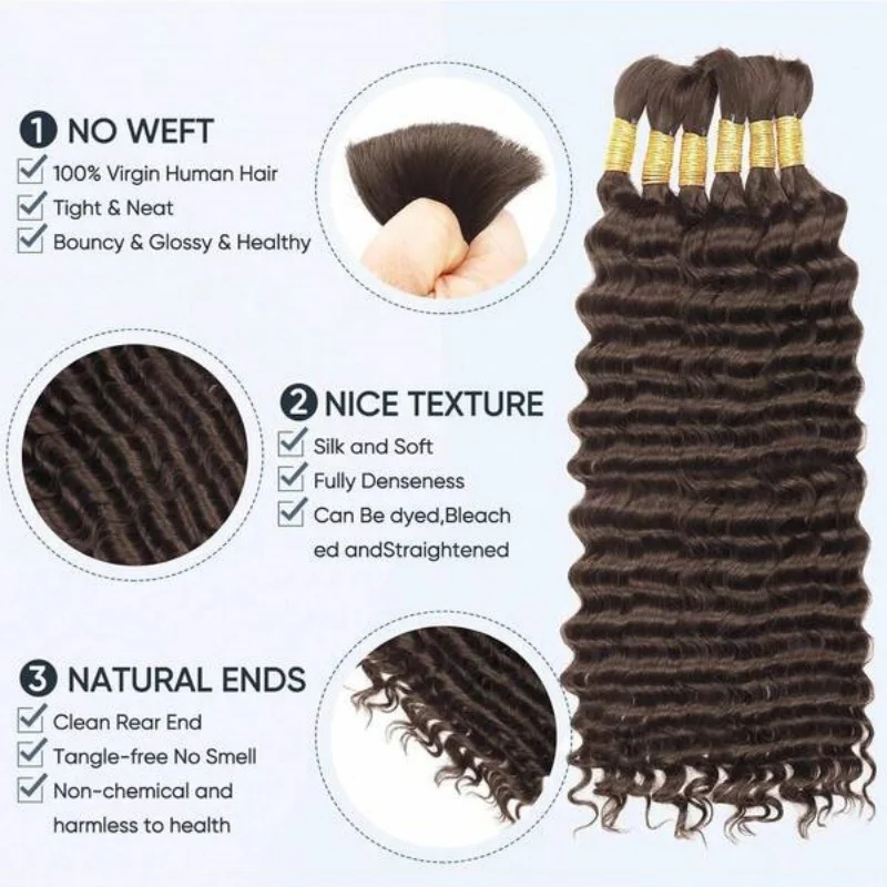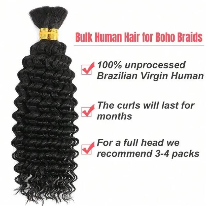Human Hair Bulk For Braiding 2 Bundles Deep Wave Human Hair Extensions Human Braiding Hair For Boho Braids Water Wave Curly Hair